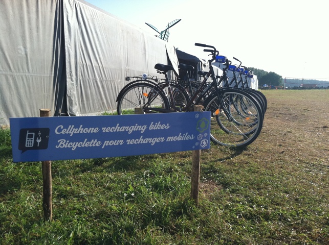 What’s the jamboree way to charge your cell phone? Like everything here, it combines hard work with being green. That’s right, bicycle-powered cell phone