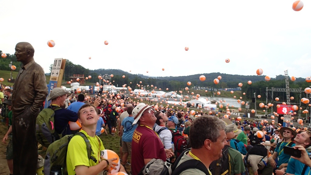 Thousands of Scouts, Scouters and Venturers assembled in a light drizzle Sunday to attempt to set the Guinness World Record for “most people keeping beach balls in the air.”