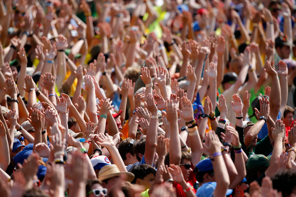 Thousands of Scouts, Scouters and Venturers assembled in a light drizzle to attempt to set the Guinness World Record for “most people keeping beach balls in the air.”