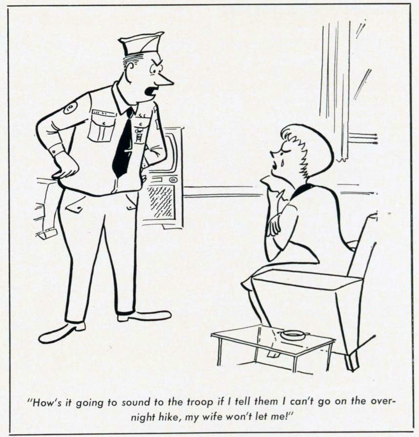 In that spirit, I’ve gathered 20 of my favorite Scouting cartoons from the 1960 to 1963 issues of Scouting magazine (available for anyone’s perusal in our app — just search your device’s app store.)