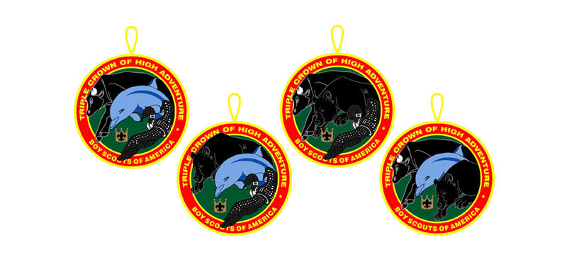 We get our first look today at the redesigned patches for the Triple Crown award. Now that there are four different qualifying combinations of high-adventure bases, the award needed four different patches: