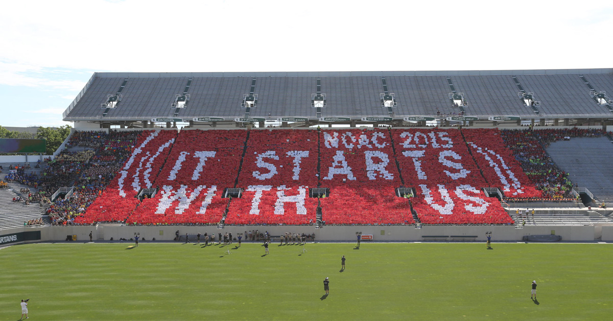 More than 15,000 Arrowmen gathered inside Michigan State’s football stadium for what organizers called the largest emergency evacuation drill in Spartan Stadium history. It benefited MSU Residential and Hospitality Services and MSU Police.