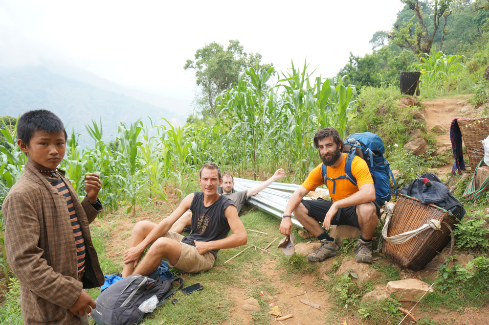 Many villages in the lower Himalayas were unreachable by roads, so he hiked gear — food, tarps, blankets, personal hygiene supplies — to those in need. Later, once the initial needs were met, he helped build semi-permanent shelters in anticipation of monsoon season.