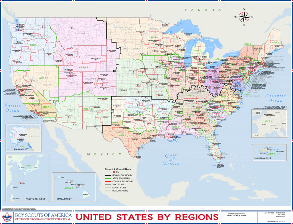 Fortunately, the BSA has a ready answer to those asking “What BSA region and area am I in?” Just check out these handy maps, which are available at no charge to Scouts, Scouters and Scouting professionals.