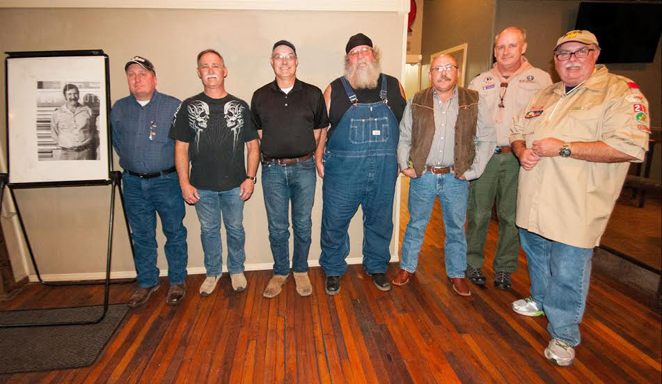 Left to right: Dan Hamilton (deceased), Joe Goodballet, Kenneth Hamilton, Chris Evans, James Hicks, Derek Ford, Doug Cook and Scoutmaster Mike Gill