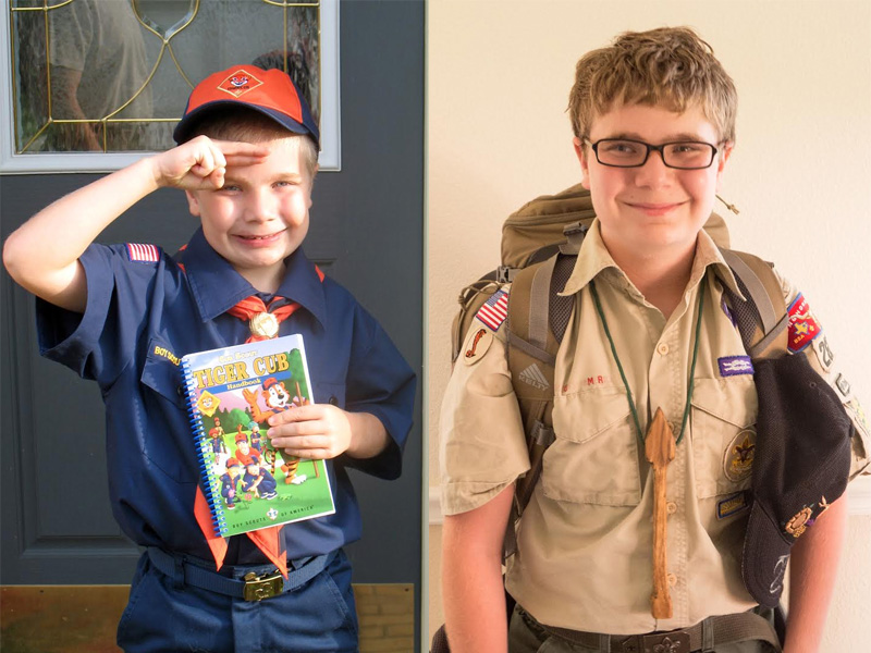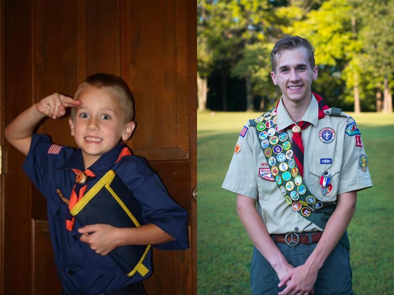 Welcome to Scouts Then and Now, a Bryan on Scouting blog series. The premise is simple. I share two photos of the same Scout or Venturer: once in his or her early Scouting years (Cub Scout, younger Boy Scout, younger Venturer) and again in his or her later Scouting years (Life Scout, Eagle Scout, older Venturer).