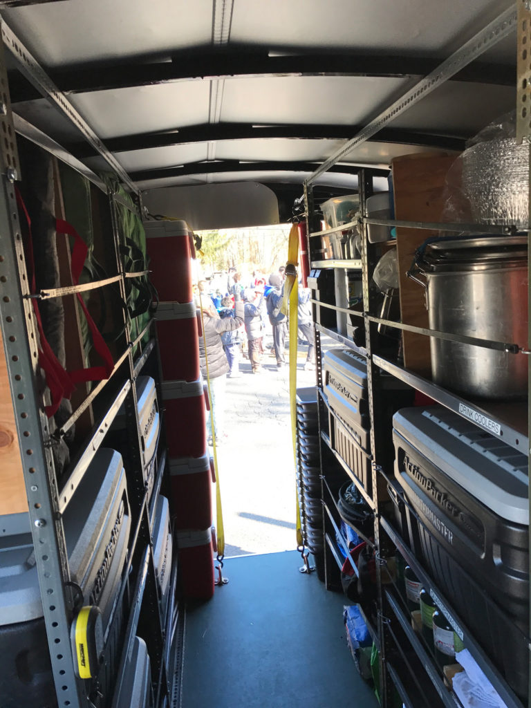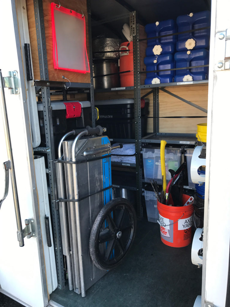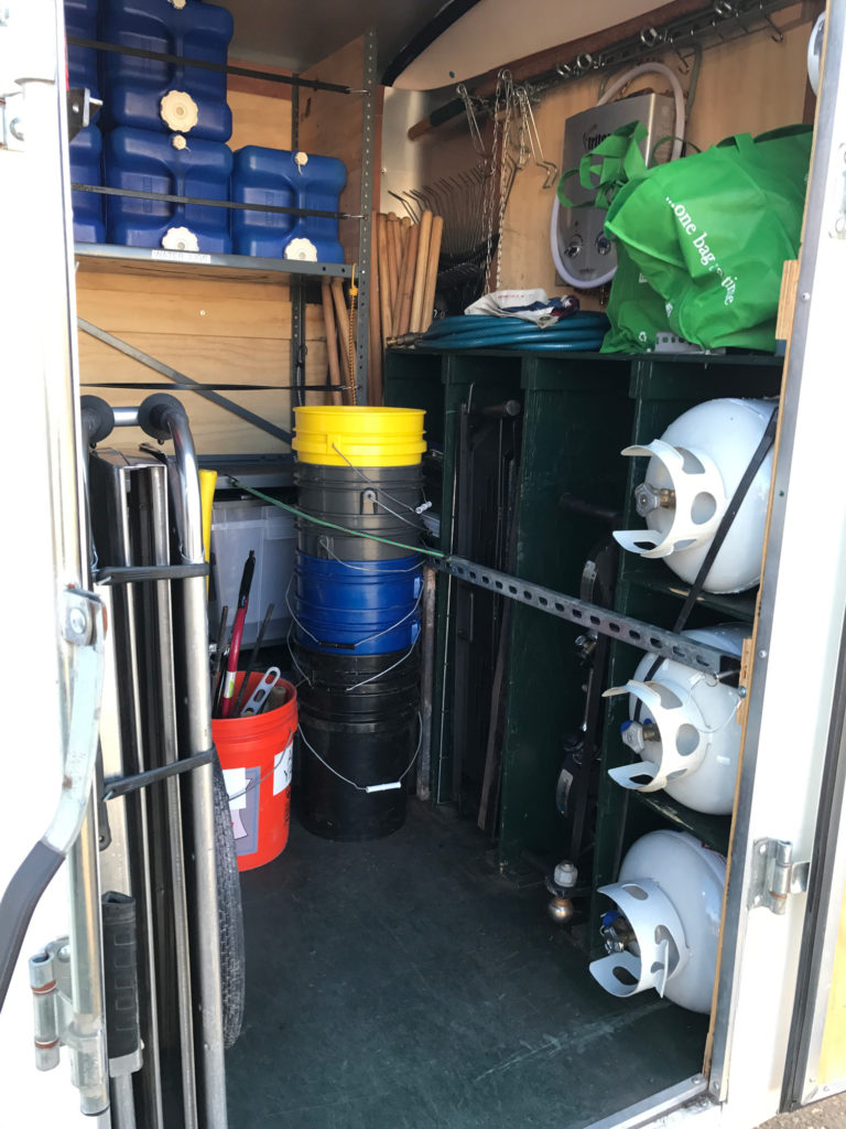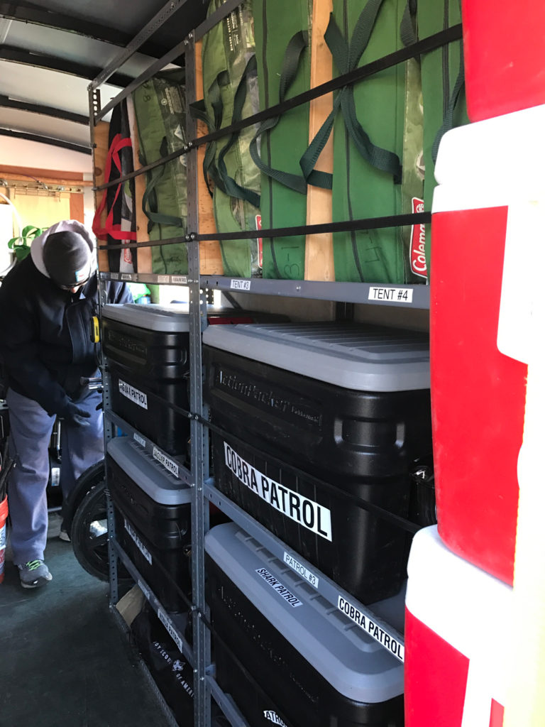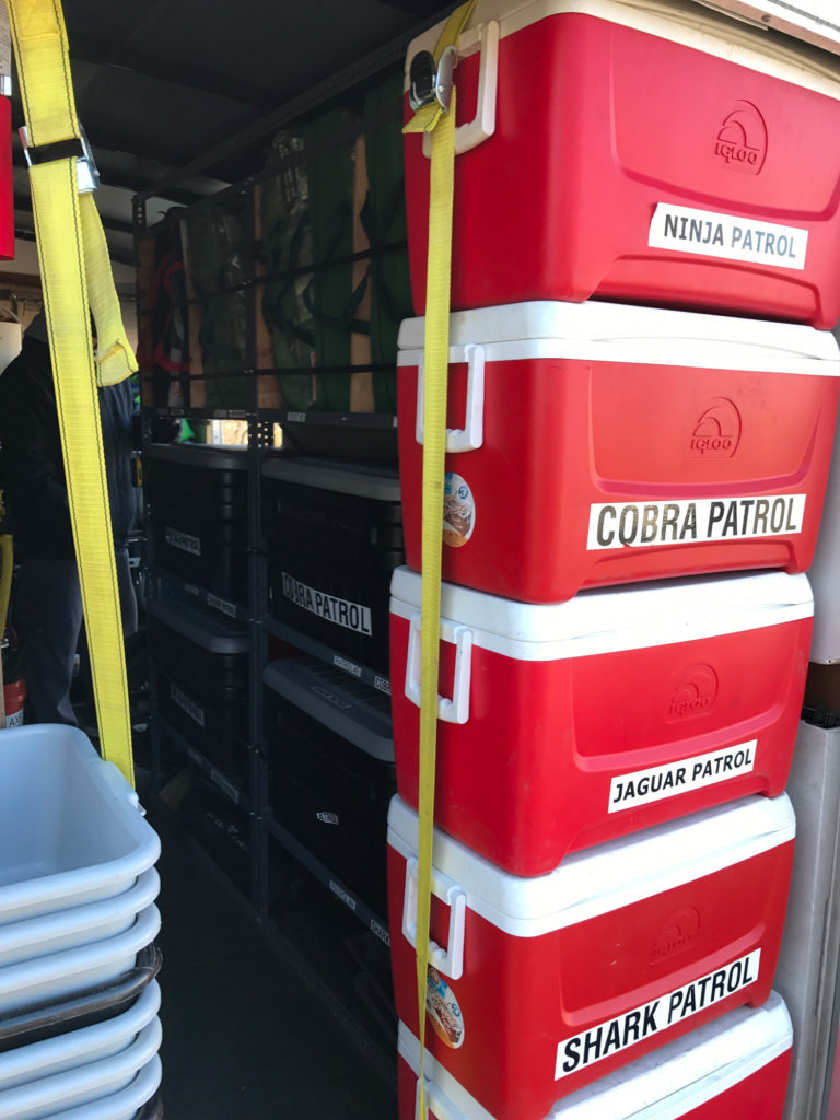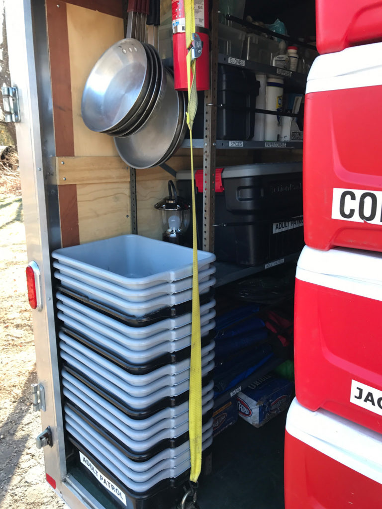 Everything in the 6-foot-by-12-foot trailer is organized by patrol. That means each group of Scouts is responsible for its own stuff.