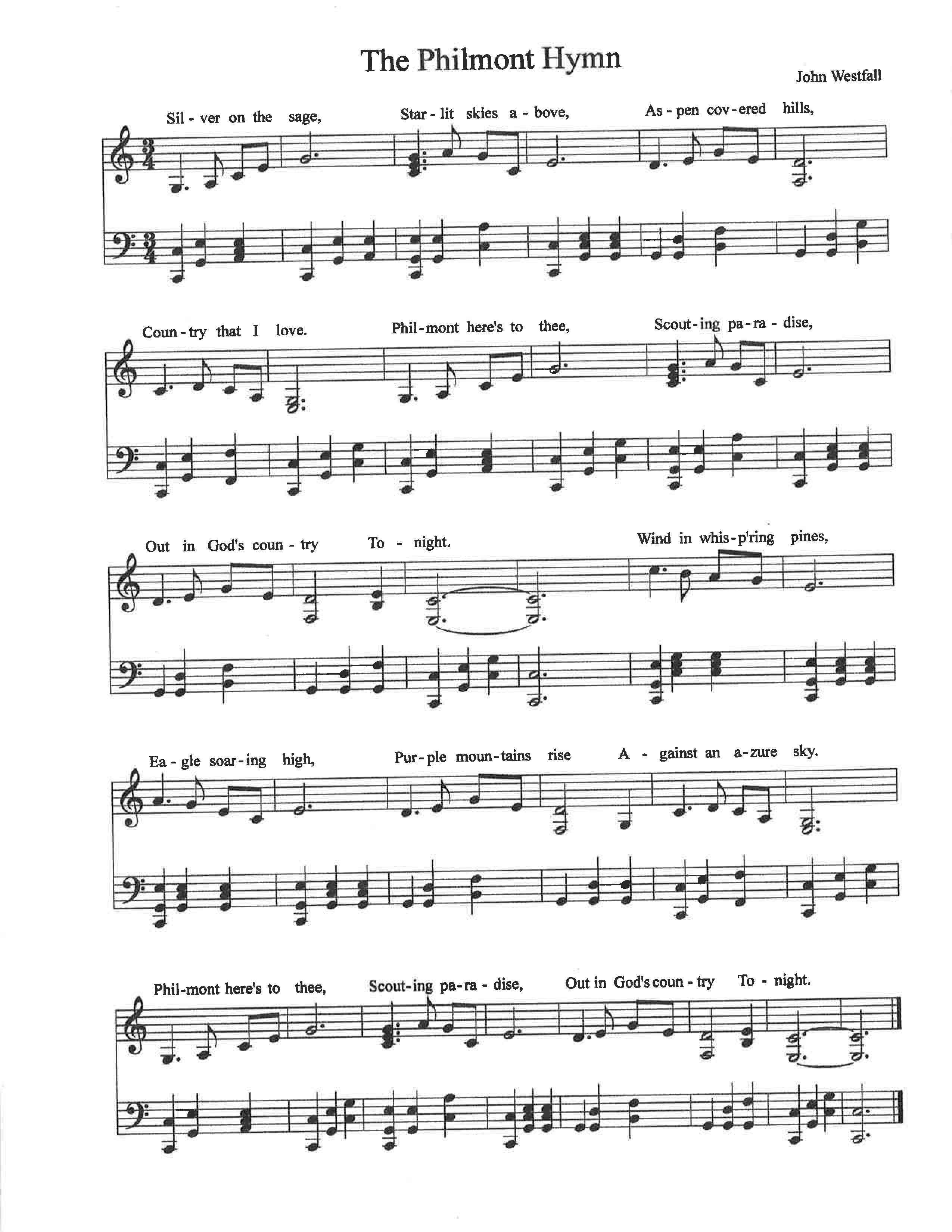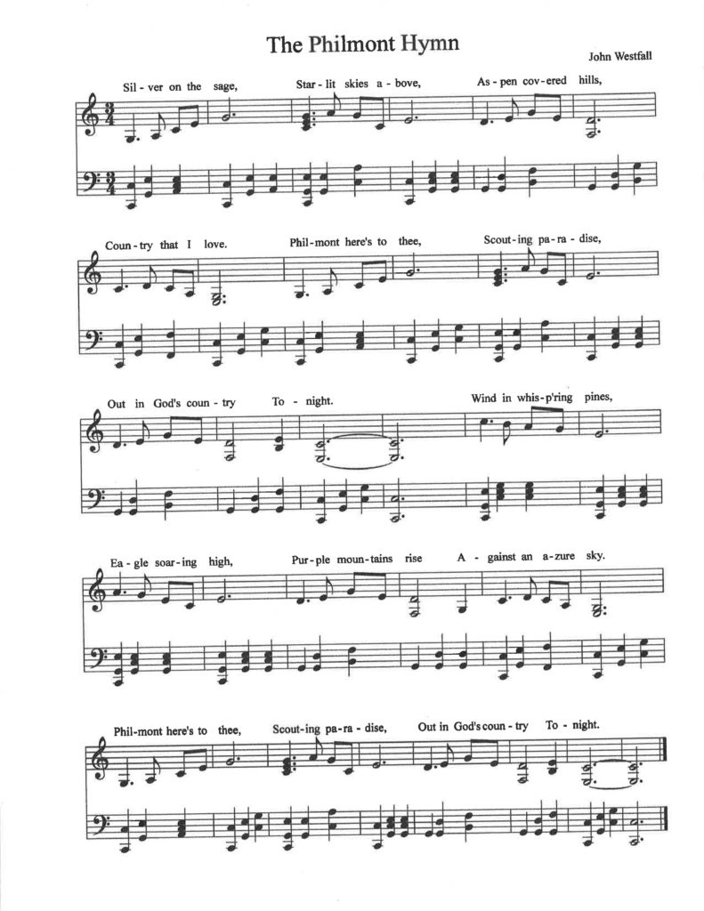 Back in civilization, those who have conquered Philmont find themselves humming “The Philmont Hymn” for weeks and months later. It is the official song of Philmont Scout Ranch.