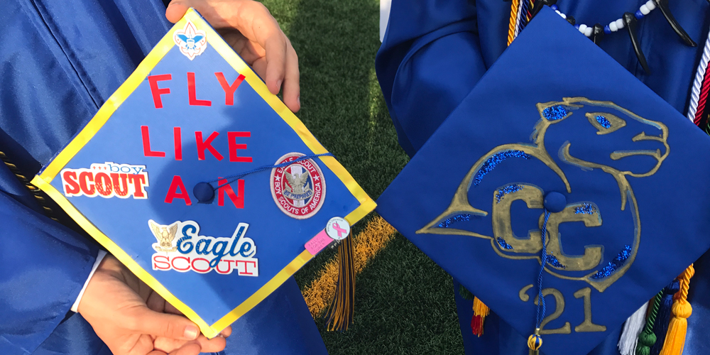 So when graduation time arrived earlier this month, the young man from Troop 80 of the Patriots’ Path Council added BSA logos and the clever phrase “fly like an Eagle Scout.”