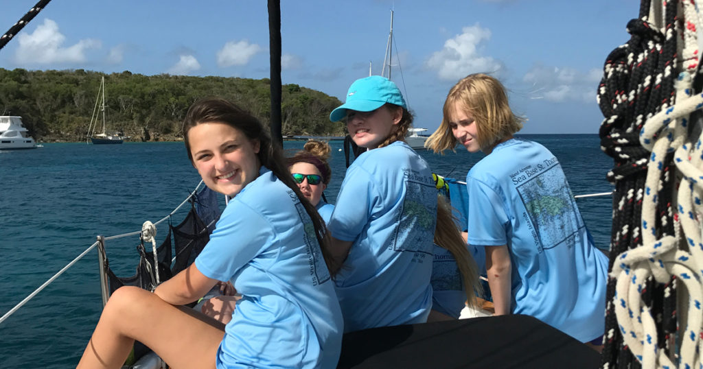 The five young women, joined by three female adult leaders, sailed to beautiful beaches where they hiked, swam, snorkeled and toured historic sites.