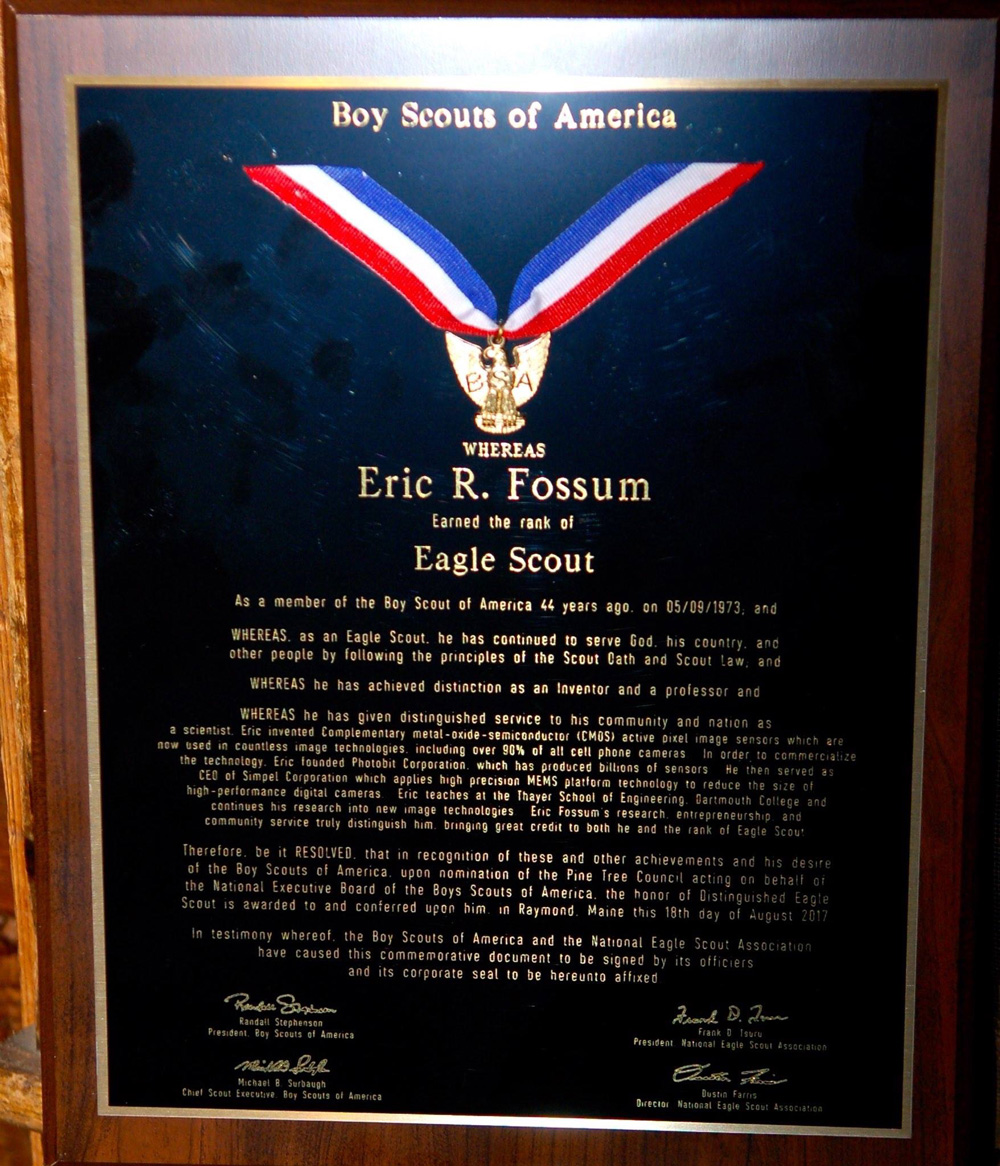“Eric Fossum has been an amazingly successful scientist and a great person,” O’Toole said. “I think that he would be an inspiring example to Scouts.”