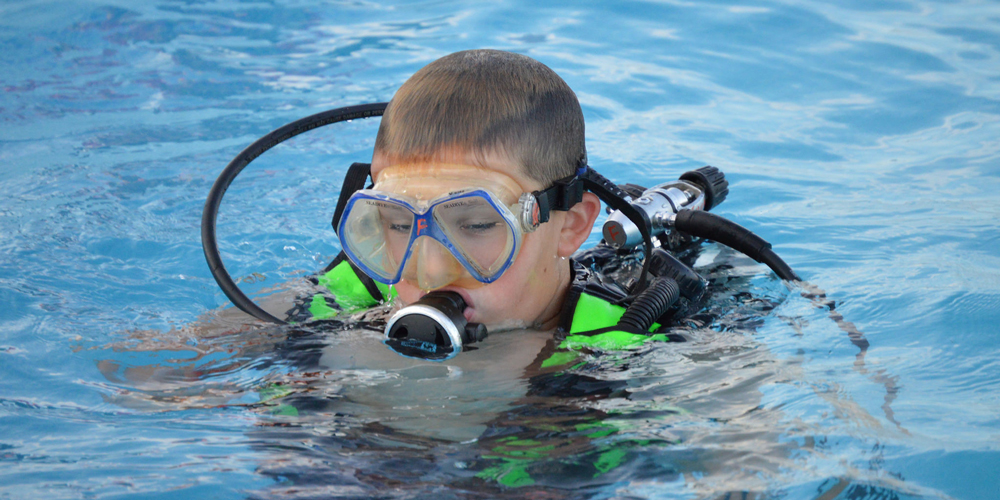 You can’t just show up at the ocean and go scuba diving. But Scouts 11 and older did show up at the “Outdoor Adventure” Pit Stop to do just that.