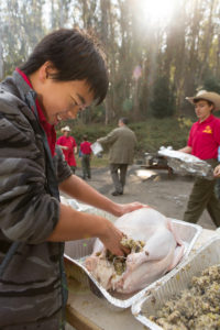 Just as you might do when making the huge annual meal indoors, recruit some help for preparing the feast. Scouts and family members can pitch in by creating table decorations, stoking the fire and cooking.