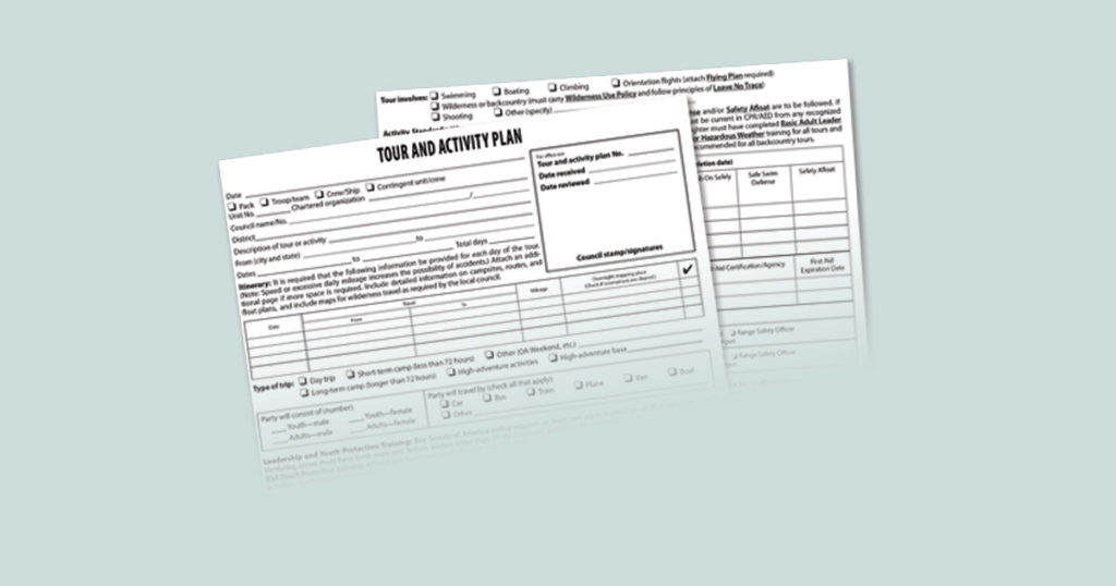 The Tour and Activity Plan was a two-page document submitted to your local council for approval at least 21 days before longer trips. As of April 1, 2017, it’s kaput.