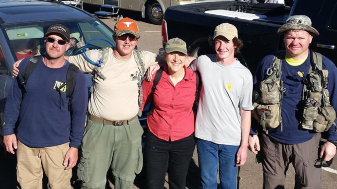 That’s when, as if from a movie, the Boy Scouts came along. Scouts and adults from Troop 312 of Royse City, Texas, helped support Katherine’s weight as she gingerly completed the final two miles.
