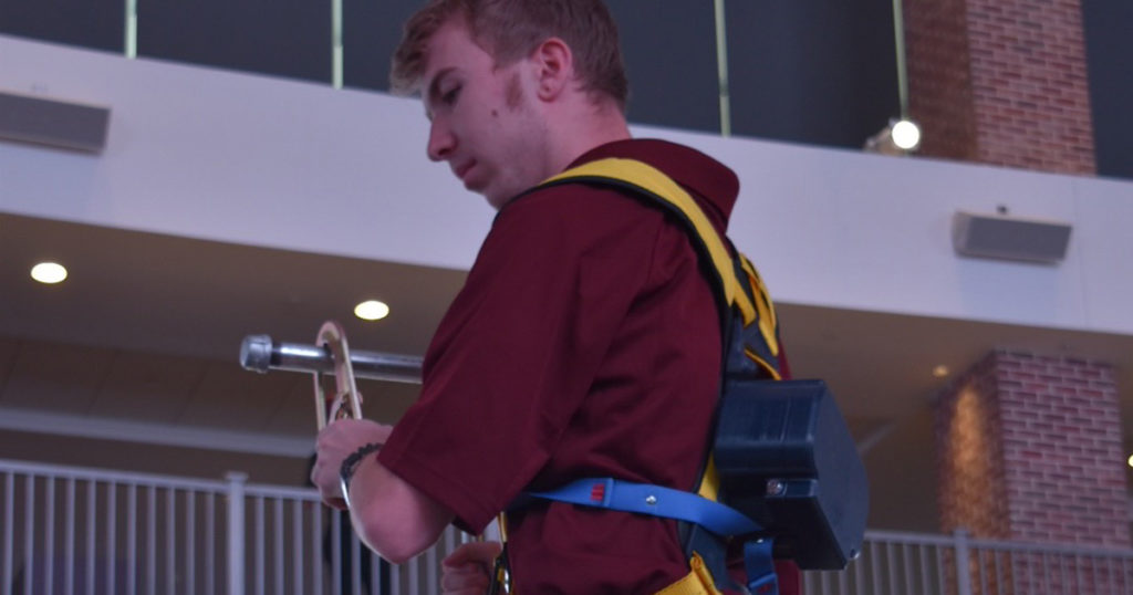 “The device our project team has invented works much in the same way as the seat belt in a car,” Anthony says. “If you’re driving without a seat belt on, your car will typically sound an alarm indicating that you should buckle up. Similarly, our team’s invention will alert the harness user if they are working at unsafe heights.”