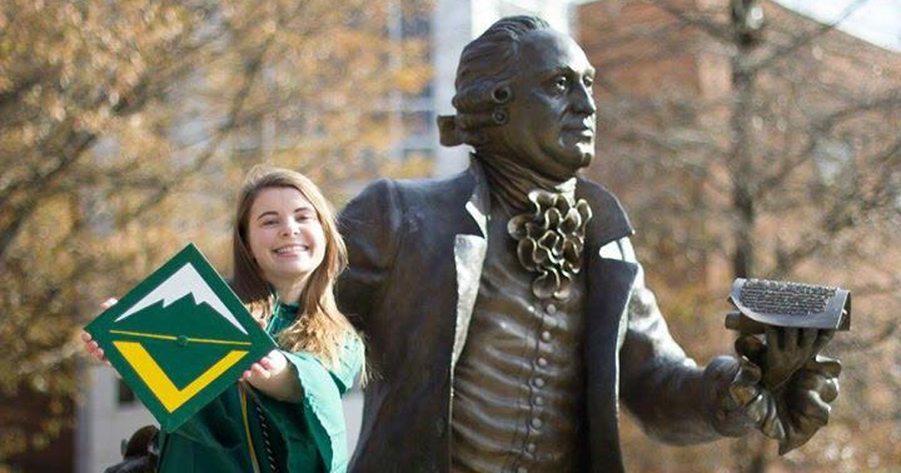 When Rachel Eddowes realized that graduates from George Mason University wear green caps and gowns, she knew just what to do.