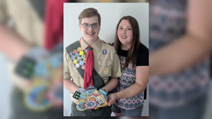 Like any active Scout, Logan Garfield has amassed quite a collection of Scouting patches.