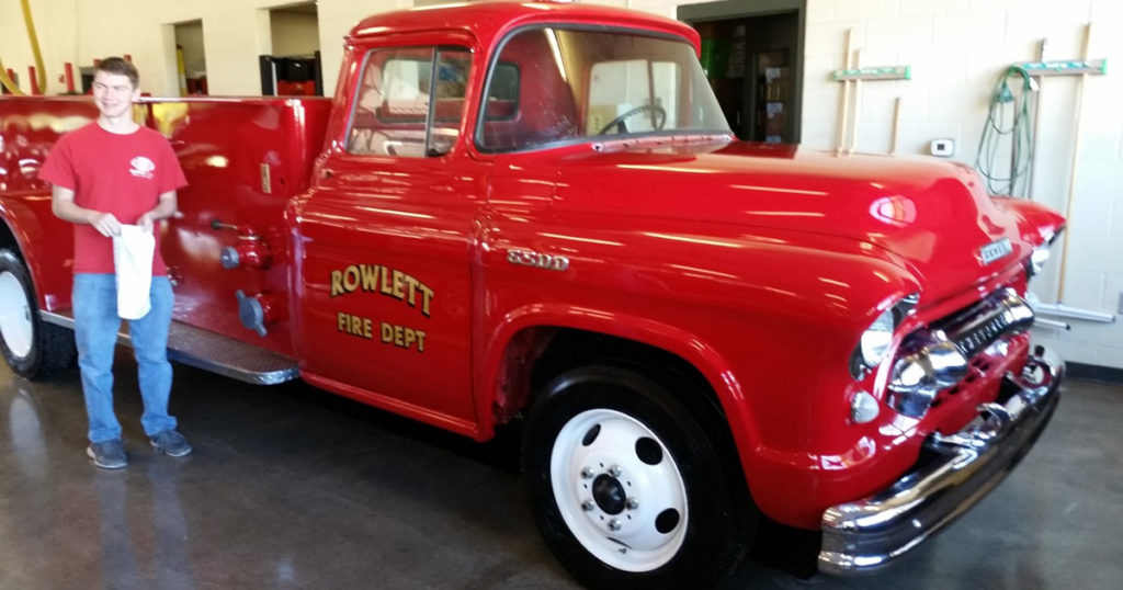 He raised $2,800 through a GoFundMe site and individual contributions. (Read about crowdfunding for Eagle projects here.) A Valspar retailer donated paint supplies, a nearby Herb’s Paint & Body shop offered technical expertise and spray equipment, and a Rowlett firefighter provided lettering for the side of the truck.