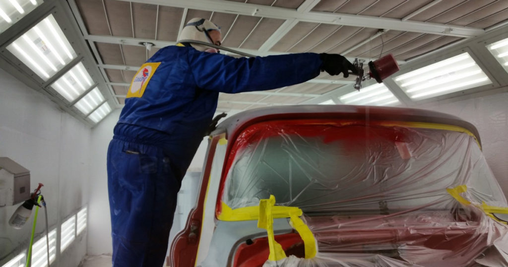 Volunteers taped and prepped the truck for its final coat of bright red paint. The actual painting was done by a team of professionals at Herb’s.