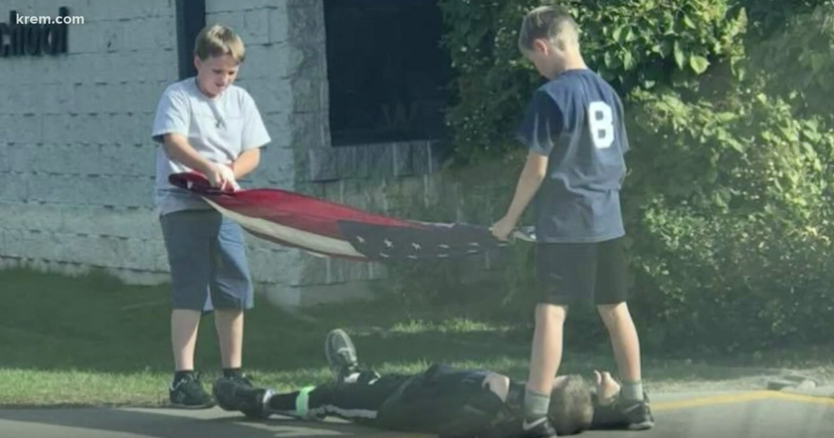 A mom who was there to pick up her kids from school saw it all. Amanda Reallan took a photo of Jack’s patriotic deed and shared it on Facebook.