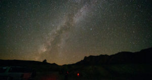 You can see many celestial objects from the national high-adventure bases. At Northern Tier, you might even catch a glimpse of the northern lights. Check out this photo of what the night sky can look like at Philmont Scout Ranch.