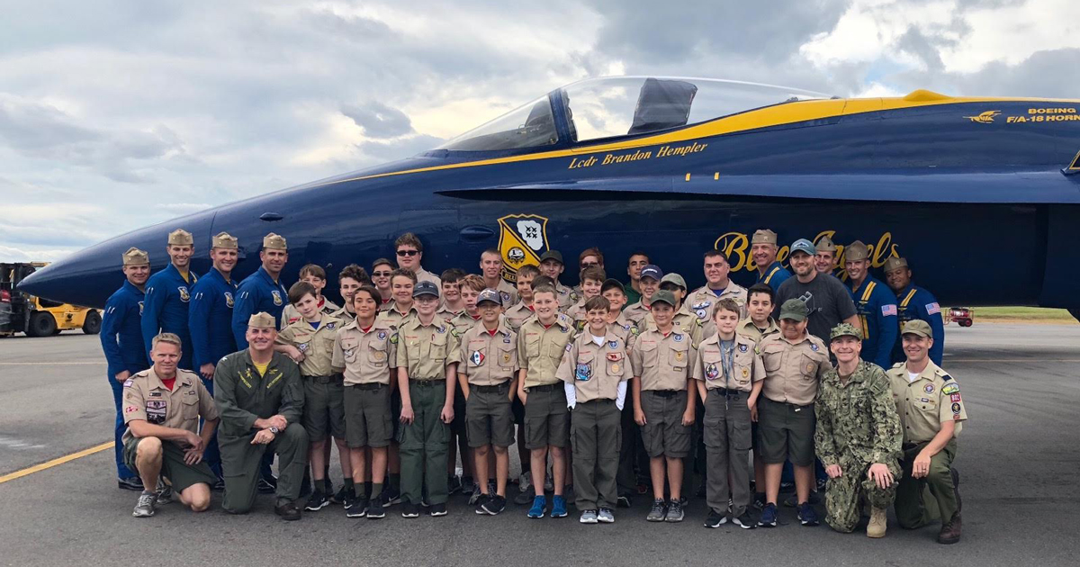 But the Scouts still made time to experience the high-flying thrills that attract visitors from across the region. This year, that included a visit with members of the Blue Angels. After watching the team’s performance, the Scouts learned that two members of the Navy’s elite flying team are Eagle Scouts.