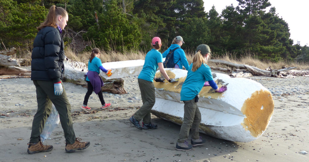 Cleaning the beaches near Fort Flagler is becoming a tradition for both troops chartered by Edmonds United Methodist Church in the BSA’s Mount Baker Council.