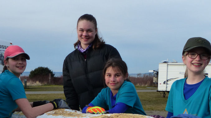 It was a mild, overcast day in March — hardly beach weather — but the Scouts were out there anyway, walking the sandy shoreline at Fort Flagler Historical State Park in Washington.