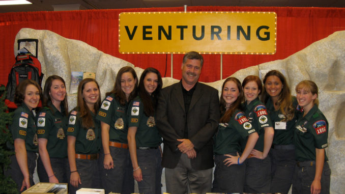 That’s Crew 1886 pictured above at the BSA’s annual meeting in Washington, D.C., in 2006. The young women were 18 at the time and were volunteering at the Venturing booth to explain the program’s benefits to attendees.