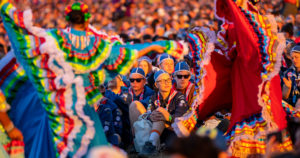 Shortly after her speech, the stage transformed in color to symbolize a spiritual campfire, and it spread into the crowd as every camper’s Novus wristbands began glowing orange. These wristbands have been used to digitally connect with others, but they took on a new role for the Unity Show.