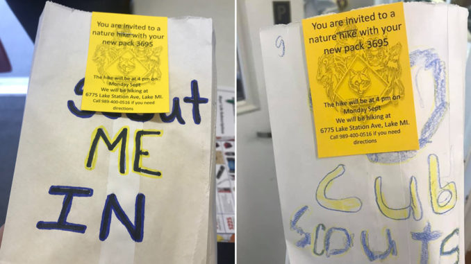 A Cub Scout pack in Michigan welcomes new members with cleverly designed bags — made by the pack’s current Cub Scouts — that include a few Scouting essentials and an invitation to the pack’s next hike.