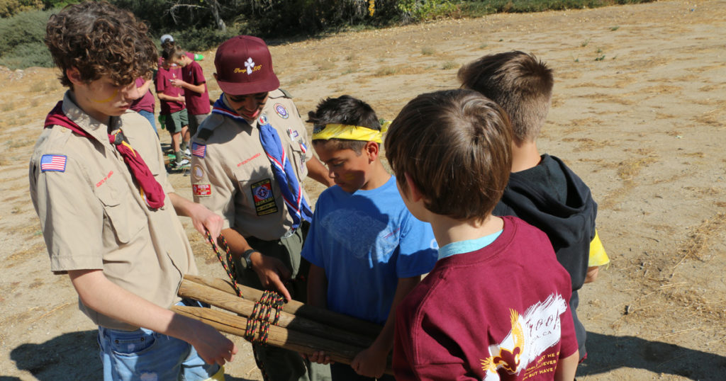 In the morning, the visiting Webelos were assigned to different Scout patrols, where the Scouts trained them on basic Scout rank skills. In the afternoon, the Webelos split into groups and competed against one another — with coaching from the Scouts BSA members — in Survivor-style challenges that tested their newly acquired know-how.