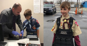 Her father, Frank Panza worked with the New York State Police for more than 33 years, retiring in 1995. She suggested that Thomas and his Webelos Scout brother Henry, both of Pack 777 in Richardson, Texas, ask their grandfather to take them to his old barracks when they came up to visit.