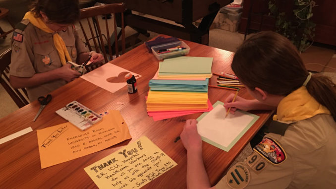 “We don’t stop being Scouts just because our meetings are physically on hold,” says Leah Nehls, a volunteer from Ypsilanti, Mich. “We have plenty of opportunities to do good and be a positive impact in our communities during times when people are feeling scared or trapped in their houses.”