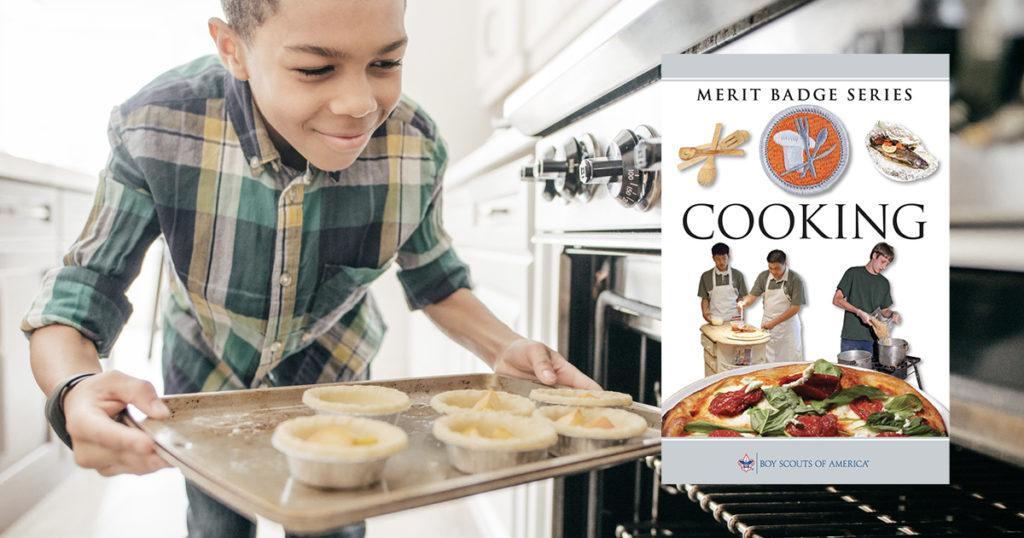 For the Eagle-required Cooking merit badge, Scouts learn cooking basics before practicing those skills in two locations: at home and at camp. Requirement 5 is about camp cooking, where Scouts plan and prepare meals for their patrol, so there’s not much potential for gifting there.