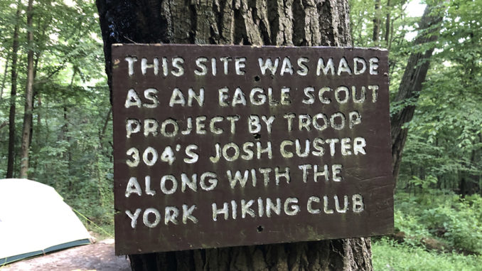 The modest wooden marker, a little faded by its years outside, read: “This site was made as an Eagle Scout project.” It listed the Eagle Scout’s name (Josh Custer) and the project beneficiary (the York Hiking Club in Pennsylvania).