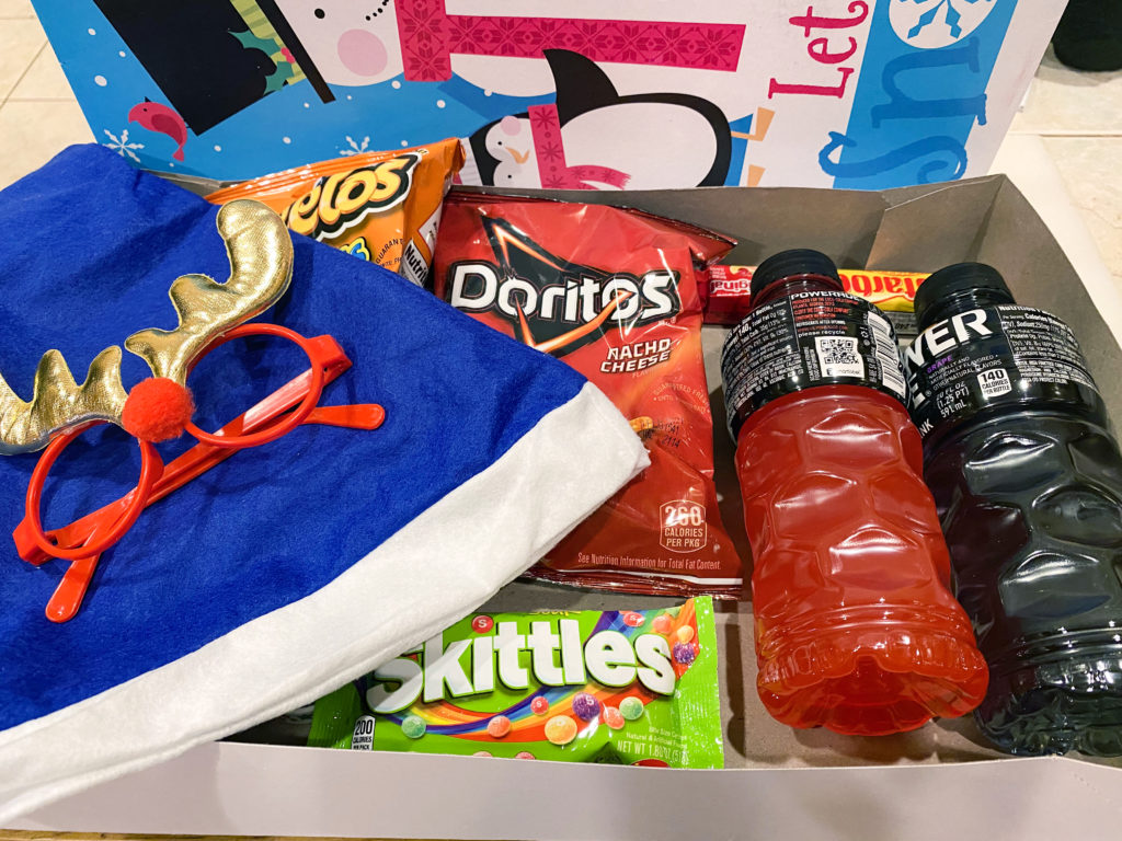 - Deliver the goods: The day before the tournament, leaders in Troop 12 crisscrossed around town delivering “tournament supply kits” to each Scout’s home. These were left on the doorstep to ensure the deliveries were no-contact. The kits were not to be opened until the tournament started. Inside, the Scouts found two bottles of Powerade, gamer-friendly snacks like Doritos and Sour Skittles, and party glasses and hats.