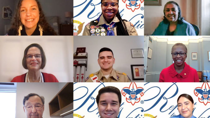 Instead, Scouts connected online, making presentations to BSA staff, volunteers and Scouting supporters from the U.S. Naval Academy and NASA’s Goddard Space Flight Center before presenting to Cheryl Johnson, the Clerk of the House, and Sonceria Ann Berry, the Secretary of the Senate.
