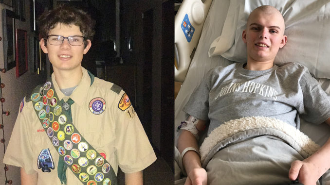 In December 2018, he felt exhausted after walking a flight of stairs. Something was wrong. He told his family over dinner that he thought his lung had collapsed. After his mother took him to a clinic, a chest X-ray confirmed that his left lung had collapsed. He went to Johns Hopkins Hospital in Baltimore, and that’s where he was diagnosed with lymphoma. Everything practically stopped as he spent the next two months in the hospital, receiving chemotherapy. Everything, that is, except for his drive to continue Scouting.