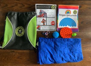 - Weighted Blanket: These blankets have a calming impact. Holden included a smaller weighted blanket that can be draped over shoulders or across one’s chest if they are lying down for a soothing affect.