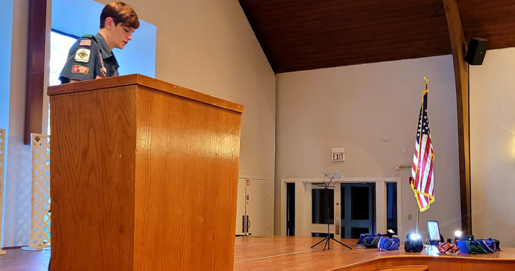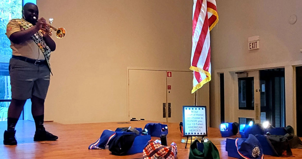 “While it meant a part of our uniform was missing, I just felt like it was the best tribute to honor these fallen heroes,” Rafe says. “Our Scouts agreed and removed them as they walked into the fellowship hall.”