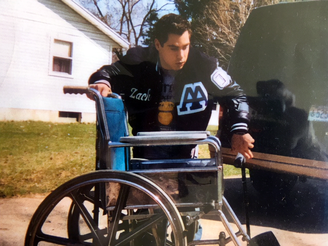Damon was born with cerebral palsy, which causes severe muscle stiffness. As a boy, he used a walker to help him get around and today uses forearm crutches to help with mobility.