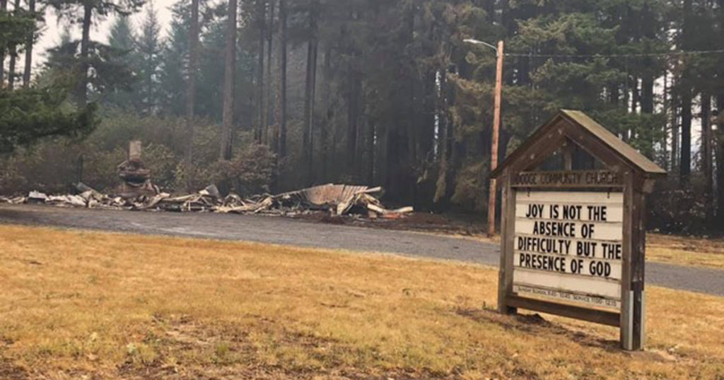 On Sept. 8, 2020, the Riverside Fire destroyed the Dodge Community Church in Estacada, Ore. Jeremiah had scheduled his first work day for Sept. 12 — just four days later.