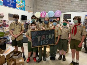 Troop 109 of Halethorpe, Md., collected more than 2,000 books for the Education Foundation of Baltimore County Public Schools. They then cleaned and sorted them for the Books for Bins campaign.