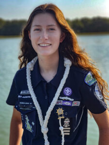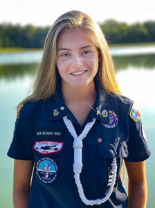 Jewell is an Able Sea Scout (the Sea Scout ranks are Apprentice, Ordinary, Able and Quartermaster). This year, she will be the national boatswain, the top youth member of Sea Scouting. Prior to being selected to the national role, she served as a territory boatswain. She is a graduate of Sea Scout Advanced Leadership Training and has served as the senior patrol leader during her council’s National Youth Leadership Training course. She is an Eagle Scout, a Brotherhood member of the Colonneh Lodge in the Order of the Arrow and is an assistant Scoutmaster for her troop.
