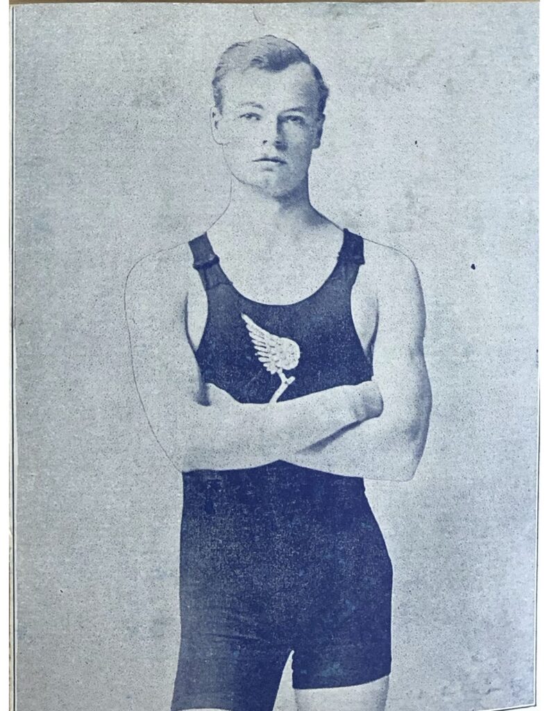 In 1904, he became the first American to win an Olympic medal, earning three golds (in the 220-yard freestyle, the 440-yard freestyle and the 4X50-yard freestyle relay), one silver and one bronze in the St. Louis Olympics.