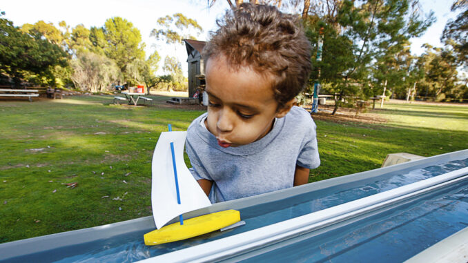 Here, we’re going to look at point No. 2. In the Raingutter Regatta, sailboats are raced down a length of water-filled rain gutters, powered by the Cub Scout blowing into the sail through a soda straw.