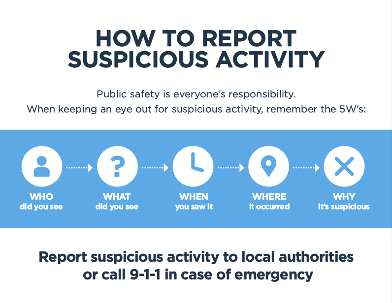 Click here for a printable pocket card with information on reporting suspicious activity.