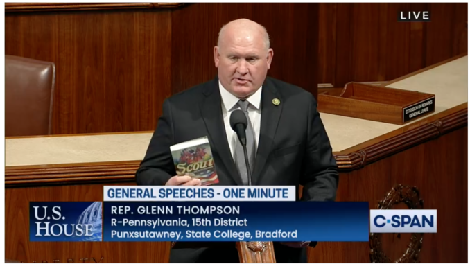 “There are more than 1 million youth currently enrolled in Scouting who contributed more than 17.7 million community service hours in 2022, helping to advance important projects from conserving local waterways to constructing accessible parks in nearly every congressional district across the country,” Thompson said on the floor of the House while holding his copy of the Scout Handbook.